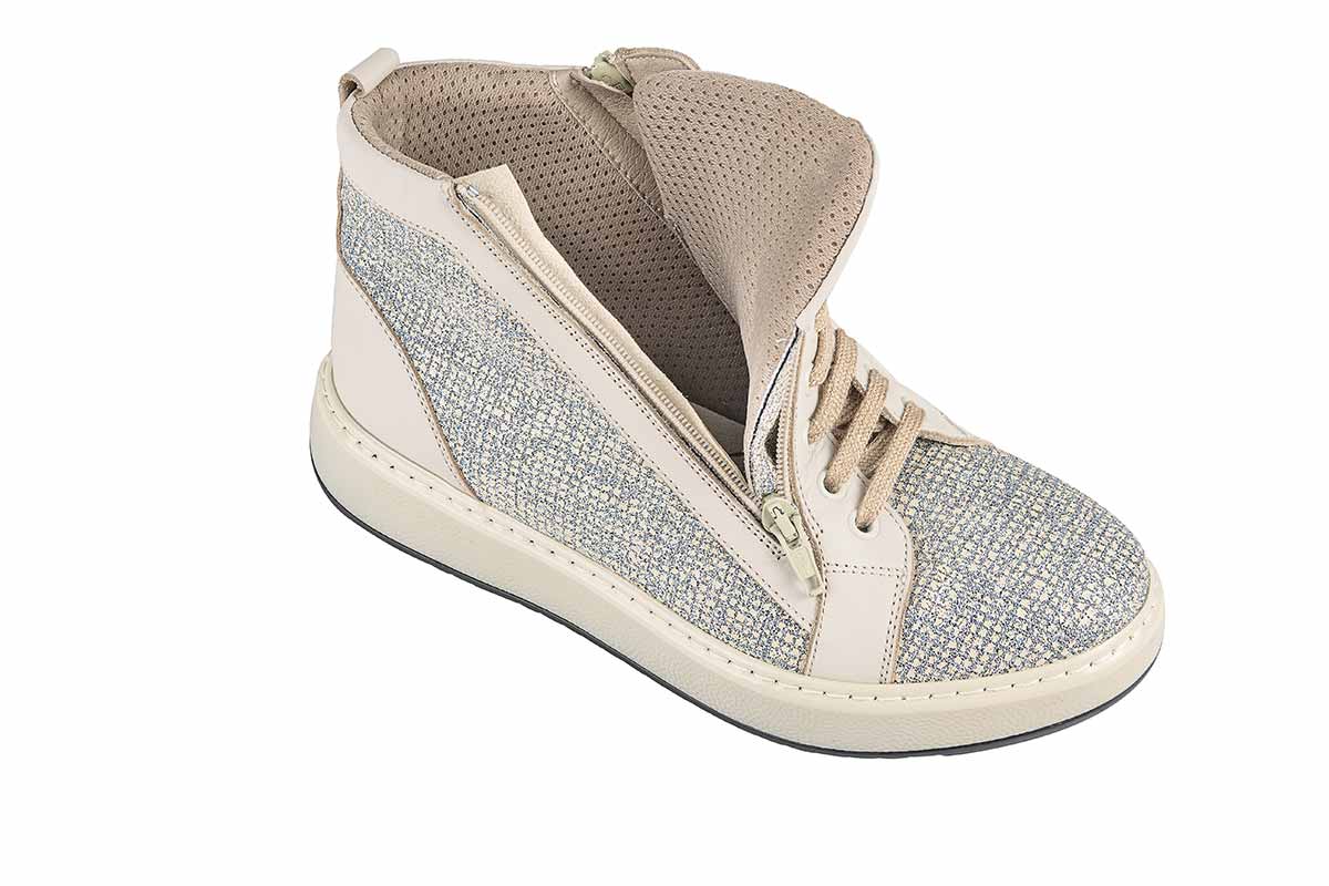 ACTIVE VIESTE PANNA DONNA è una calzatura che si personalizza secondo le valutazioni mediche del Tecnico Ortopedico il quale individuerà il grado di rigidità della suola in base al grado di rischio e alla patologia. La tomaia automodellante e senza cuciture interne nelle zone di sfregamento consente di adattarsi al piede contenendo comodamente le deformità. La chiusura a lacci consente di aprire la parte anteriore della tomaia e di regolare il volume interno in base alla necessità.