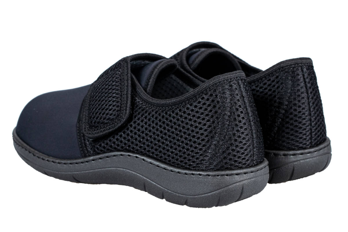 Facile da indossare, ideale per il periodo estivo, consente di alloggiare piedi molto gonfi, chiusura a velcro per facile regolazione e calzata agevolata.