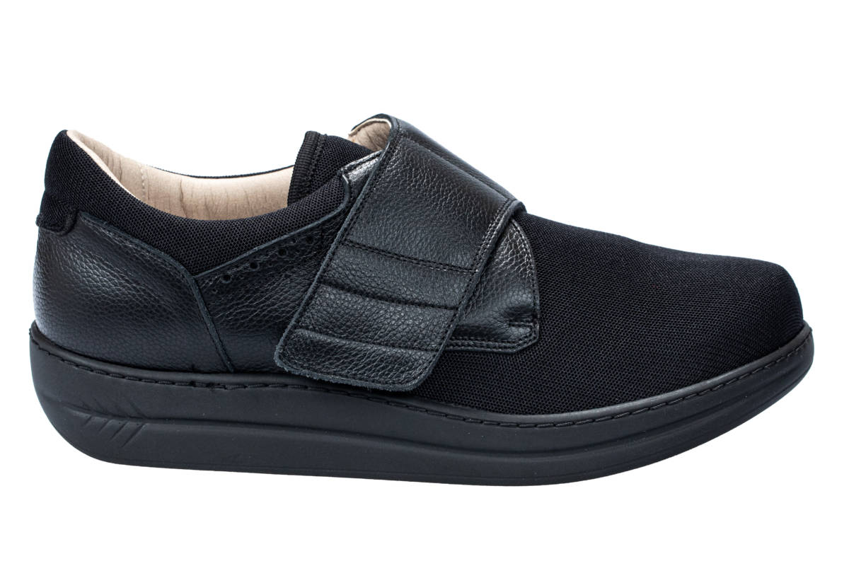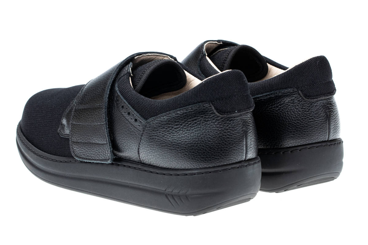 ENERGY ALEX NERO è una calzatura che si personalizza secondo le valutazioni mediche del Tecnico Ortopedico il quale individuerà il grado di rigidità della suola in base al grado di rischio e alla patologia. La tomaia automodellante e senza cuciture interne nelle zone di sfregamento consente di adattarsi al piede contenendo comodamente le eventuali deformità.