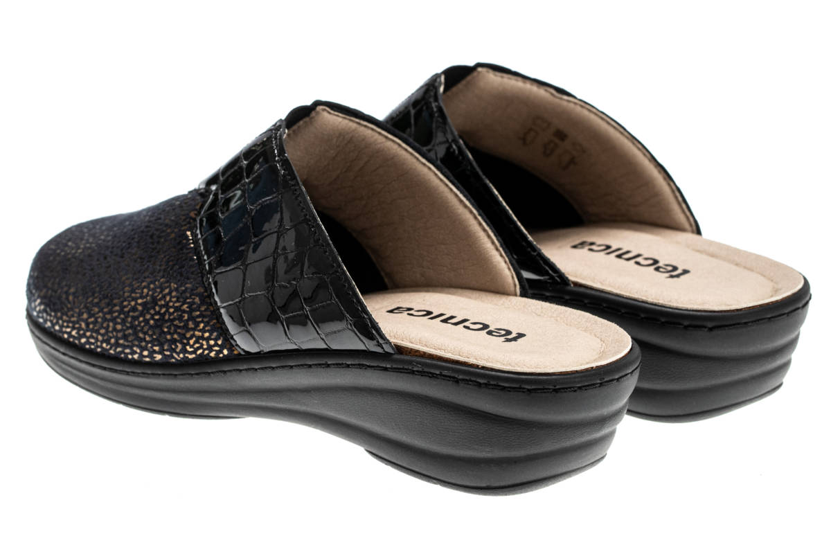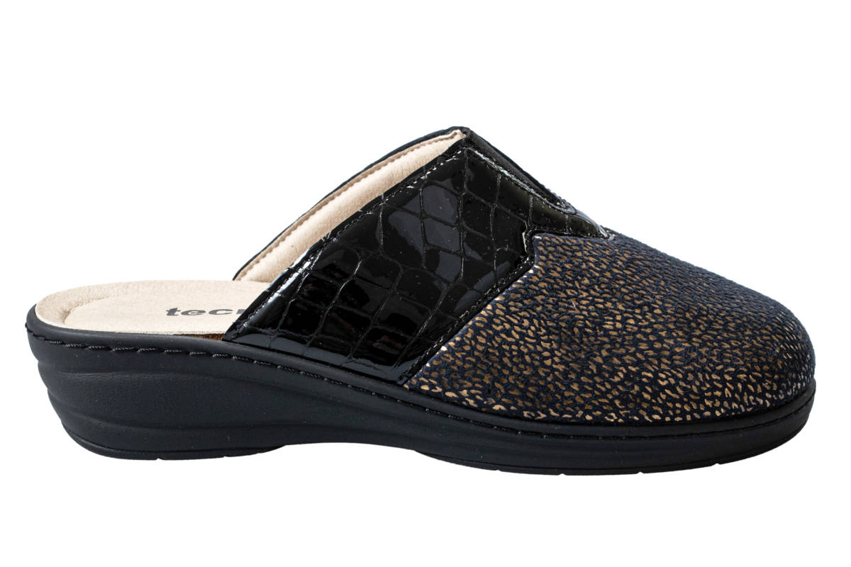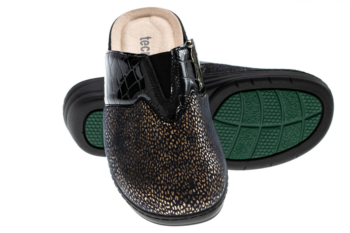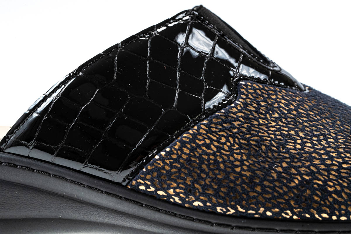 La tomaia automodellante e senza cuciture interne nelle zone di sfregamento consente di adattarsi al piede contenendo comodamente le deformità inoltre è predisposta per l’inserimento di un plantare personalizzato.